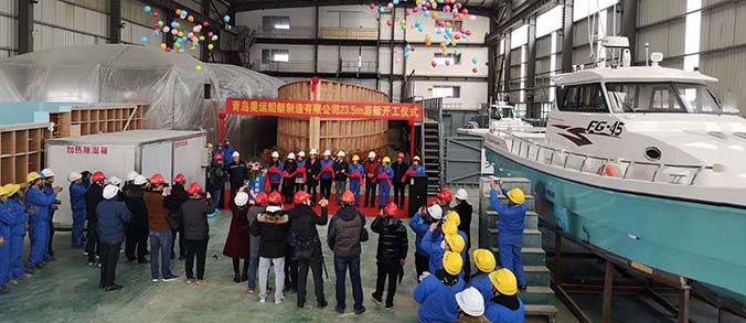 2019年1月8號(hào)昊運(yùn)船艇24米游釣艇開(kāi)工儀式,昊運(yùn)船艇邀請(qǐng)青島船級(jí)社領(lǐng)導(dǎo)、用戶及設(shè)備供應(yīng)商共同剪彩。
